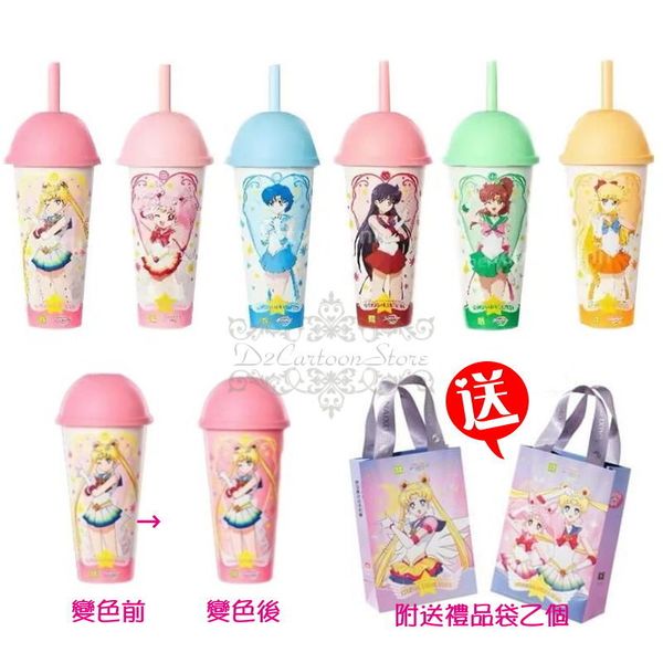 美少女戰士 SAILORMOON 正版 變色 凍飲杯 戶外 便攜 飲品杯 家居 水杯 餐具 飲管 紙袋 連飲筒 附送禮品袋 (一套全6款) SAILOR MOON 【平行進口】