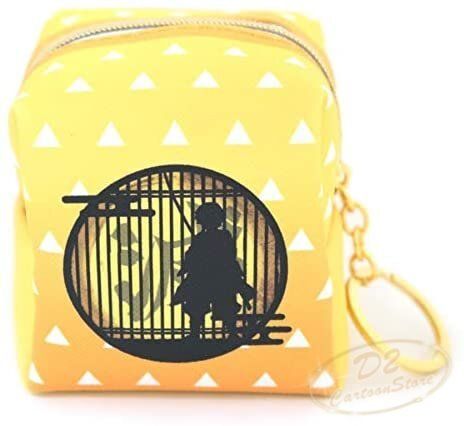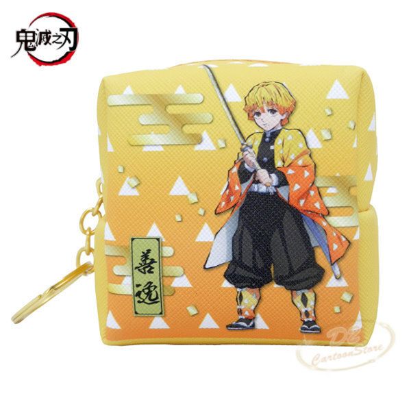 鬼滅之刃 鬼滅の刃 日版 魔方袋 PU 仿皮 收納袋 正方型 鑰匙扣 小物袋 拉鍊 儲物袋 (我妻善逸) 【平行進口】