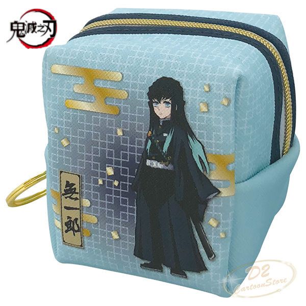 鬼滅之刃 鬼滅の刃 日版 魔方袋 PU 仿皮 收納袋 正方型 鑰匙扣 小物袋 拉鍊 儲物袋 鬼殺隊 霞柱 霞之呼吸 (時透無一郎) 【平行進口】