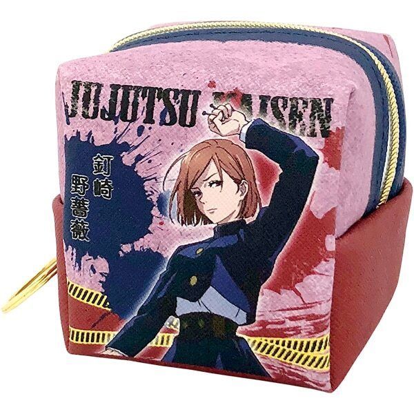 BANDAI-咒術迴戰 呪術廻戦 日版 魔方袋 PU 仿皮 收納袋 正方型 鑰匙扣 小物袋 拉鍊 儲物袋 VER.1 2020年款 (釘崎野薔薇) 【平行進口】