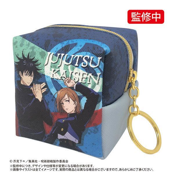 BANDAI-咒術迴戰 呪術廻戦 日版 魔方袋 PU 仿皮 收納袋 正方型 鑰匙扣 小物袋 拉鍊 儲物袋 VER.2 2021年款 (五條悟 + 一年級生) 【平行進口】