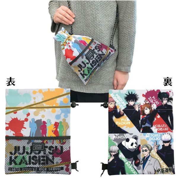 咒術迴戰 呪術廻戦 日版 雙面 索袋 索繩袋 索繩包 收納袋 儲物袋 斜揹袋 斜挎包 手機袋 2021年款 (潑油) 【平行進口】