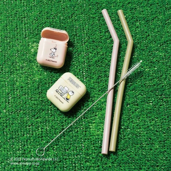 HASHY-PEANUTS SNOOPY 史努比 日版 便携 環保 飲筒 吸管 連 AIRPOD造型 收納套 清潔刷 2022年款 (史奴比) 史諾比 【平行進口】