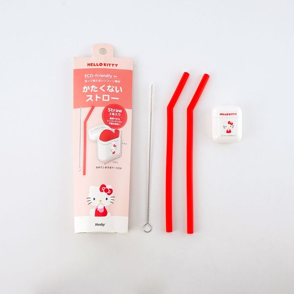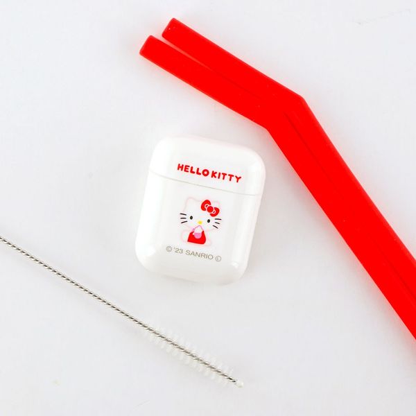 HASHY-SANRIO- HELLO KITTY 日版 便携 環保 飲筒 吸管 連 AIRPOD造型 收納套 清潔刷 2023年款 凱蒂貓 吉蒂貓 【平行進口】
