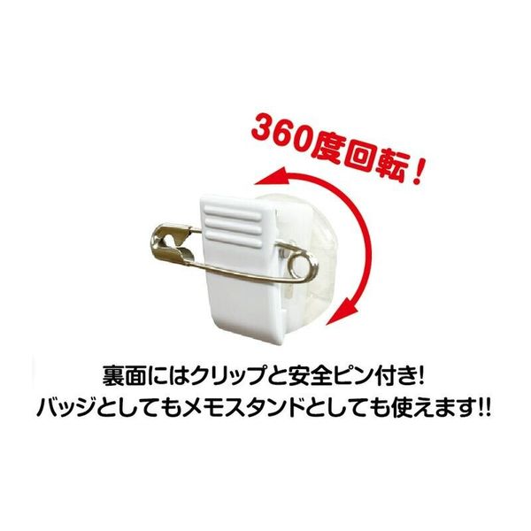 ■ 裏面には360度回転するクリップと安全ピン付き!バッジとしてもメモスタンドとしても使えます。