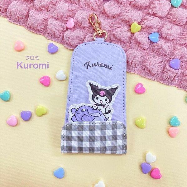 SANRIO-KUROMI 日版 格仔圖案 仿皮 便攜式 伸縮 鎖匙套 鑰匙套 鎖匙扣 鑰匙扣 酷洛米 庫洛米 可羅米 2024年款 【平行進口】