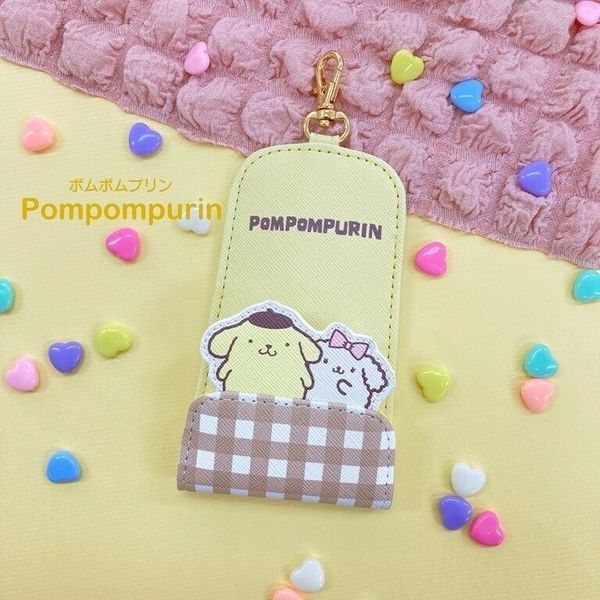 SANRIO-POMPOMPURIN 布甸狗 日版 格仔圖案 仿皮 便攜式 伸縮 鎖匙套 鑰匙套 鎖匙扣 鑰匙扣 布丁狗 2024年款 【平行進口】