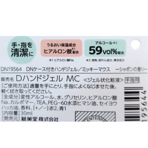 日版 MINNIE MOUSE 米妮老鼠 消毒搓手液 酒精濃度59% 潔手凝露 30ML (粉紅色) 【平行進口】