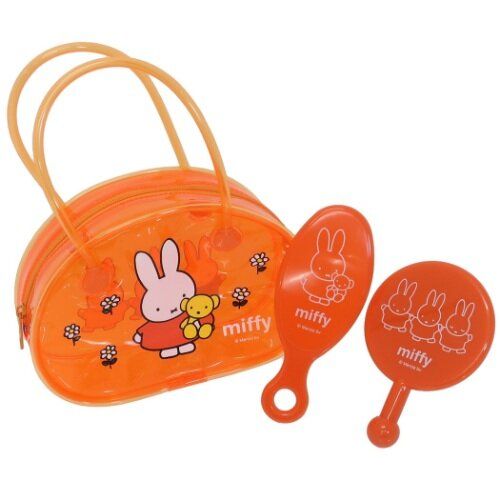MIFFY 米菲 日版 手提袋 手握梳 手握鏡 化妝鏡 便携 袋 梳 鏡 套裝 外出 米菲兔 (橙) 【平行進口】