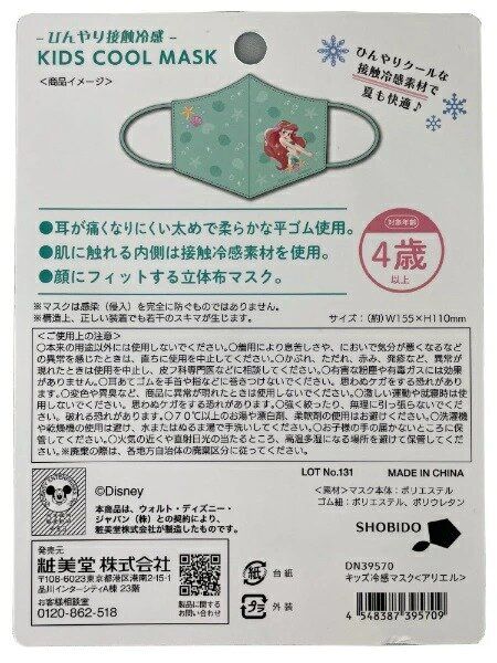 迪士尼 DISNEY PRINCESS 小魚仙 日版 夏天 涼感 兒童 布口罩 一個裝 透氣 散熱 愛麗兒 ARIEL 美人魚 迪士尼公主 2021年款 【平行進口】