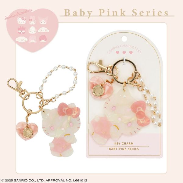 SANRIO-粧美堂 HELLO KITTY 日版 日本限定 珍珠光澤質感 亞克力 鎖匙扣 壓克力 吊飾 掛件 2025年 BABY PINK系列 凱蒂貓 吉蒂貓 【平行進口】