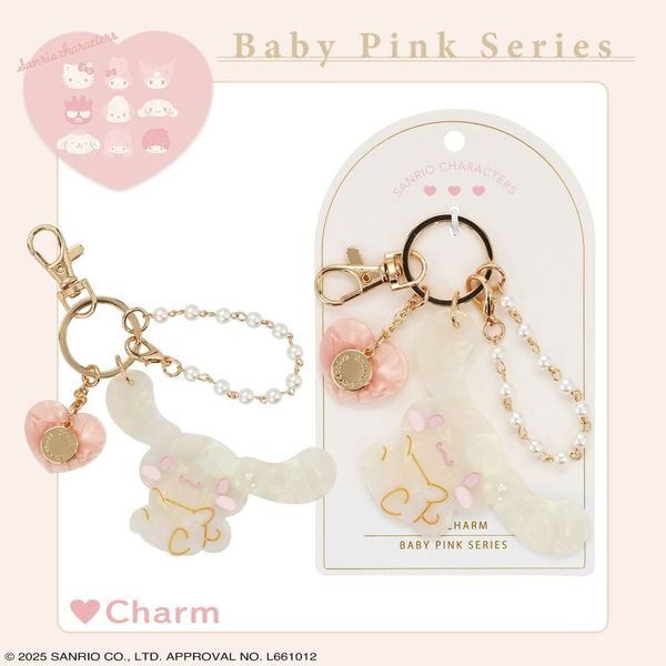 SANRIO-粧美堂 CINNAMOROLL 玉桂狗 日版 日本限定 珍珠光澤質感 亞克力 鎖匙扣 壓克力 吊飾 掛件 2025年 BABY PINK系列 大耳狗 喜拿狗 【平行進口】