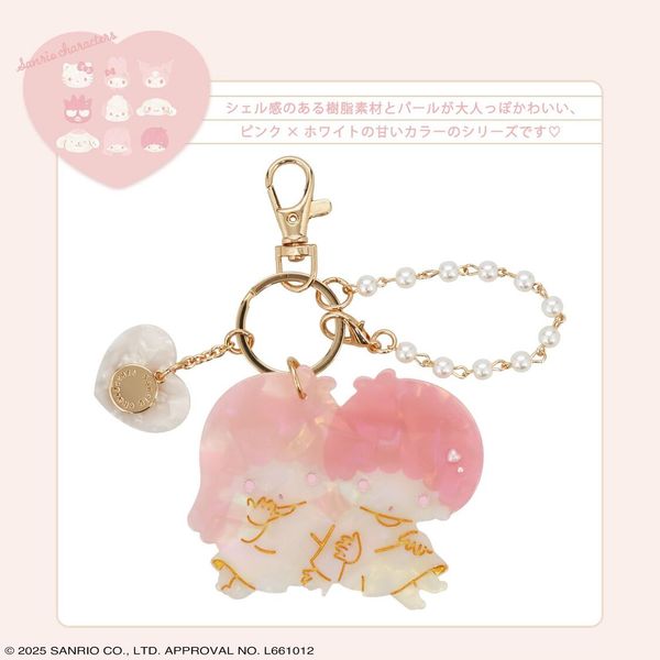 SANRIO-粧美堂 LITTLE TWIN STARS 日版 日本限定 珍珠光澤質感 亞克力 鎖匙扣 壓克力 吊飾 掛件 2025年 BABY PINK系列 雙子星 KIKI LALA 【平行進口】