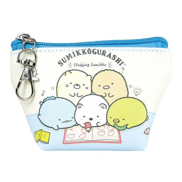 SAN-X SUMIKKO GURASHI 角落生物 日版 便攜 PVC 仿皮 三角形 匙扣 散紙包 皮革 零錢包 多功能 收納袋 銀包 小物袋 儲物袋 (讀書) 【平行進口】
