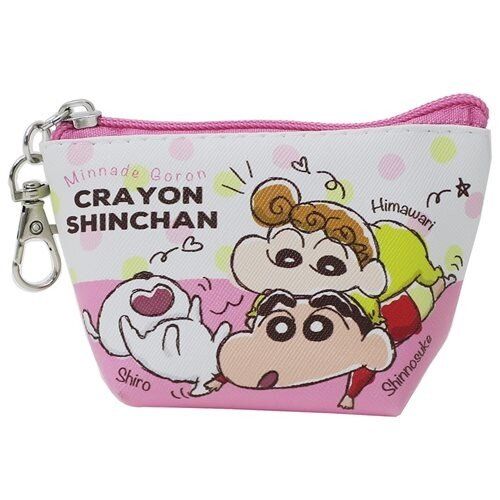 蠟筆小新 日版 便攜 PVC 仿皮 三角形 匙扣 散紙包 皮革 零錢包 多功能 收納袋 銀包 小物袋 儲物袋 野原新之助 野原向日葵 (小新X小葵) 【平行進口】