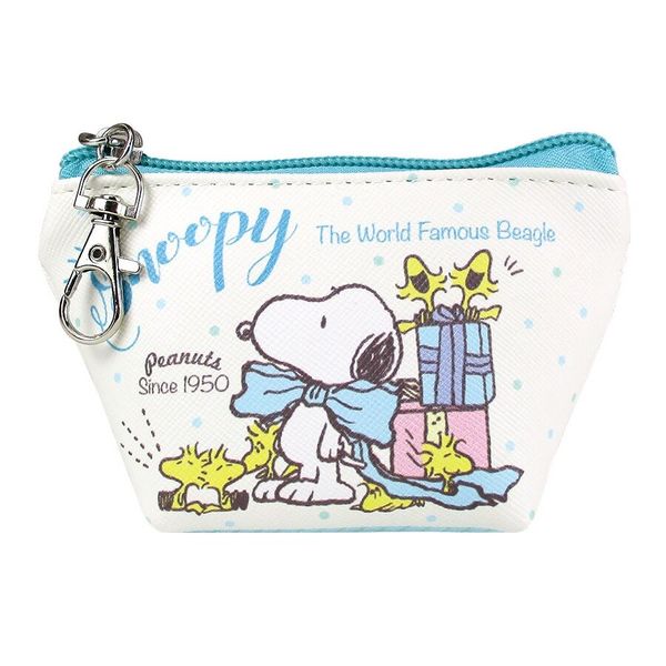 SNOOPY 史努比 日版 便攜 PVC 仿皮 三角形 匙扣 散紙包 皮革 零錢包 多功能 收納袋 銀包 小物袋 儲物袋 (米白X粉藍) 【平行進口】