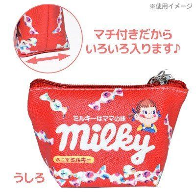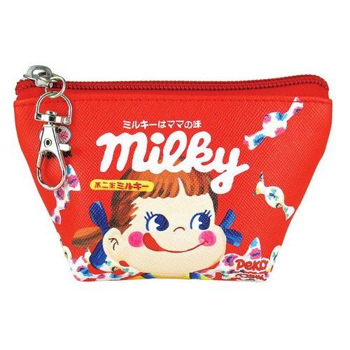 不二家- 牛奶妹 日版 便攜 PVC 仿皮 三角形 匙扣 散紙包 皮革 零錢包 多功能 收納袋 銀包 小物袋 儲物袋 (紅色) 【平行進口】