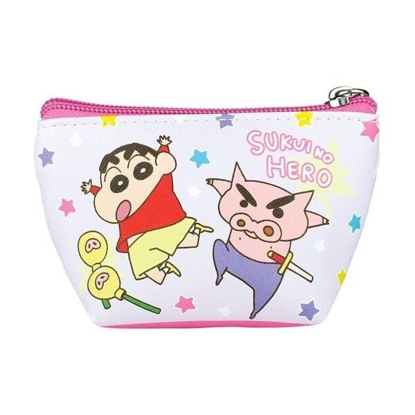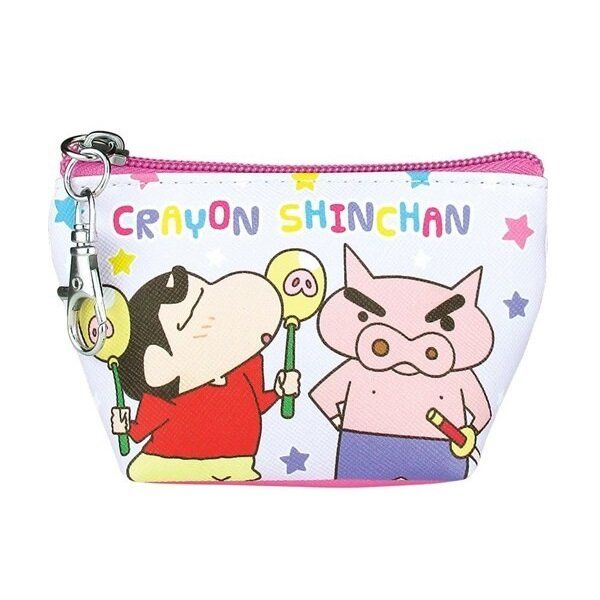 蠟筆小新 日版 便攜 PVC 仿皮 三角形 匙扣 散紙包 皮革 零錢包 多功能 收納袋 銀包 小物袋 儲物袋 野原新之助 肥嘟嘟左衛門 (小新X不理不理左衛門) 【平行進口】