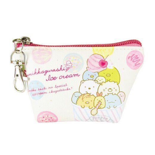SAN-X SUMIKKO GURASHI 角落生物 日版 便攜 PVC 仿皮 三角形 匙扣 散紙包 皮革 零錢包 多功能 收納袋 銀包 小物袋 儲物袋 (雪糕) 【平行進口】