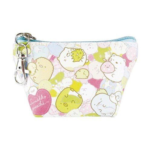 SAN-X SUMIKKO GURASHI 角落生物 日版 便攜 PVC 仿皮 三角形 匙扣 散紙包 皮革 零錢包 多功能 收納袋 銀包 小物袋 儲物袋 (溫馨) 【平行進口】