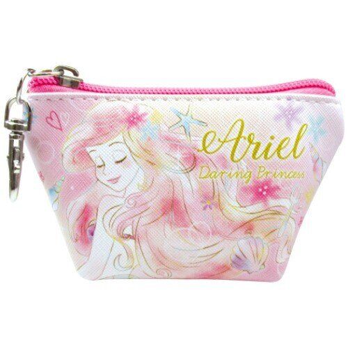 DISNEY PRINCESS 迪士尼 公主 日版 便攜 PVC 仿皮 三角形 匙扣 散紙包 皮革 零錢包 多功能 收納袋 銀包 小物袋 儲物袋 AIREL 美人魚 (粉紅 小魚仙) 【平行進口】