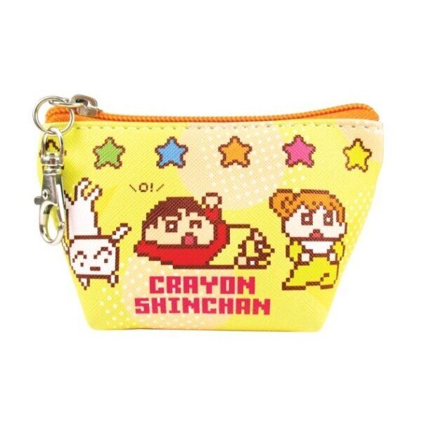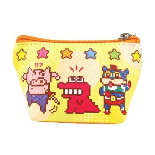 蠟筆小新 日版 便攜 PVC 仿皮 三角形 匙扣 散紙包 皮革 零錢包 多功能 收納袋 銀包 小物袋 儲物袋 野原新之助 不理不理左衛門 動感超人 (馬賽克 黃色) 【平行進口】