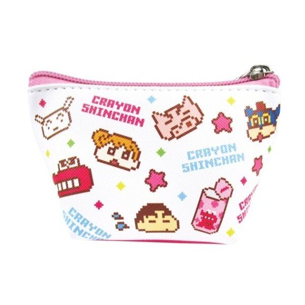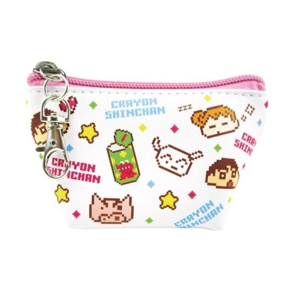 蠟筆小新 日版 便攜 PVC 仿皮 三角形 匙扣 散紙包 皮革 零錢包 多功能 收納袋 銀包 小物袋 儲物袋 野原新之助 不理不理左衛門 小葵 小白 (馬賽克 白色) 【平行進口】