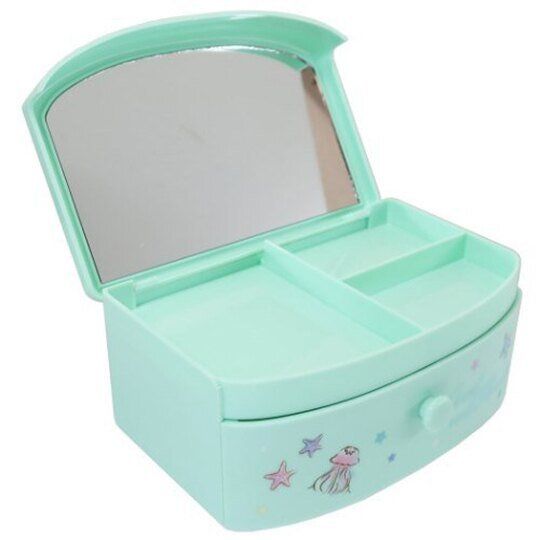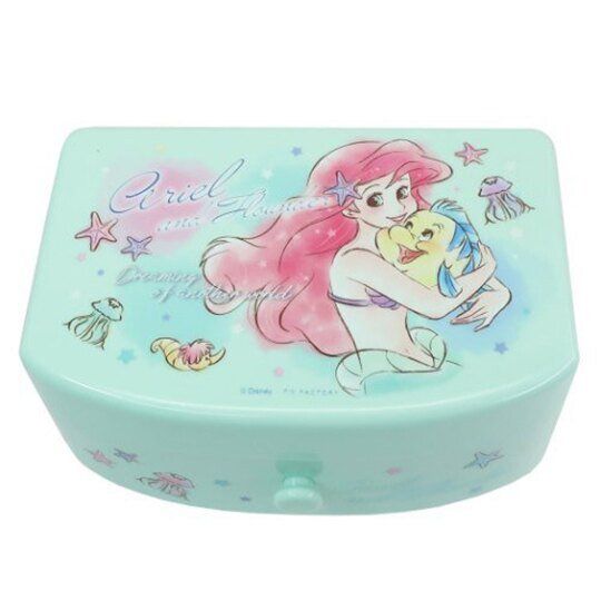 迪士尼 DISNEY PRINCESS ARIEL 小魚仙 日版 塑膠 開合 首飾盒 飾物盒 抽屜盒 鏡櫃 化妝鏡 收納盒 置物盒 附鏡 (2020年款) (粉藍) 【平行進口】