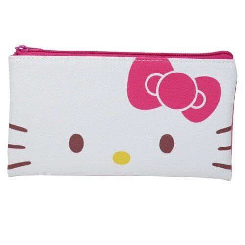 HELLO KITTY 日版 日本限定 合成皮革 大臉造型 扁平 筆袋 收納袋 扁身 小物袋 化妝袋 KITTY 凱蒂貓 KT 吉蒂貓 【平行進口】