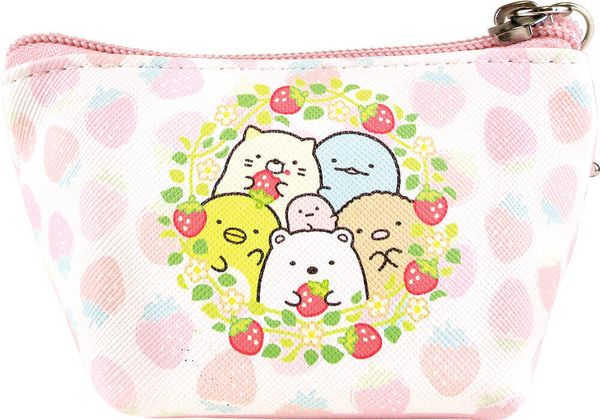 SAN-X SUMIKKO GURASHI 角落生物 日版 便攜 PVC 仿皮 三角形 匙扣 散紙包 皮革 零錢包 多功能 收納袋 銀包 小物袋 儲物袋 (草莓) 【平行進口】