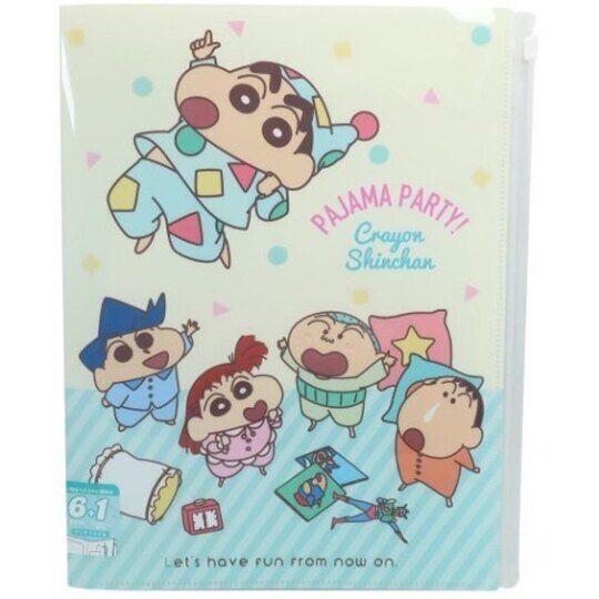 蠟筆小新 日版 文具 A4 文件袋 FILE 文件夾 資料夾 6+1口袋 FOLDERS 拉鍊袋 2021年款 (睡衣派對) 【平行進口】