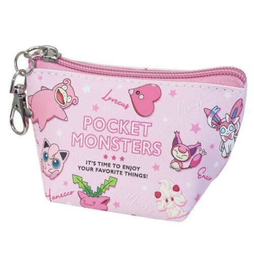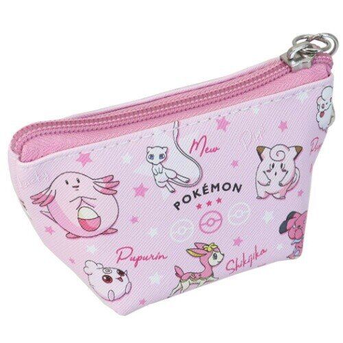 POKÉMON 精靈寶可夢 日版 比卡超 POKEMON 皮卡丘 便攜 PVC 仿皮 三角形 匙扣 散紙包 皮革 零錢包 多功能 收納袋 銀包 小物袋 儲物袋 波波 呆呆獸 (粉紅色) 【平行進口】