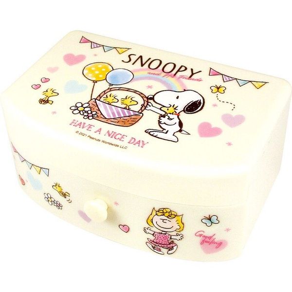 PEANUTS SNOOPY 史努比 日版 塑膠 開合 首飾盒 飾物盒 抽屜盒 鏡櫃 化妝鏡 收納盒 置物盒 附鏡 史奴比 史諾比 (2021年款) (粉黃款) 【平行進口】