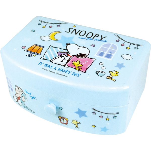 PEANUTS SNOOPY 史努比 日版 塑膠 開合 首飾盒 飾物盒 抽屜盒 鏡櫃 化妝鏡 收納盒 置物盒 附鏡 史奴比 史諾比 (2021年款) (粉藍款) 【平行進口】