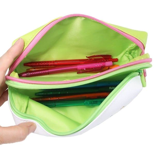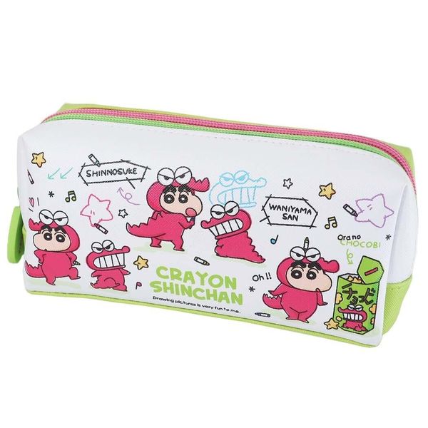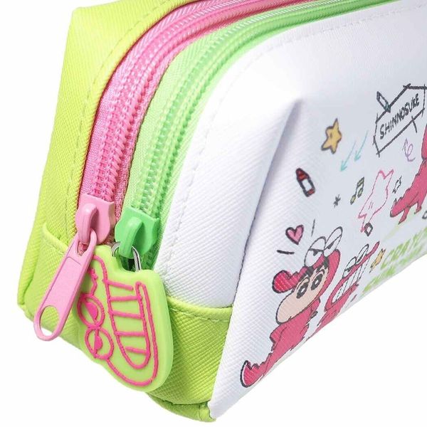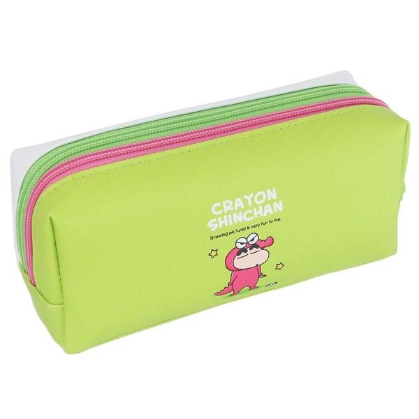 蠟筆小新 日版 筆袋 化妝包 收納袋 儲物袋 雙拉鍊 附橡膠吊飾 2022年款 (綠色X白色) 【平行進口】