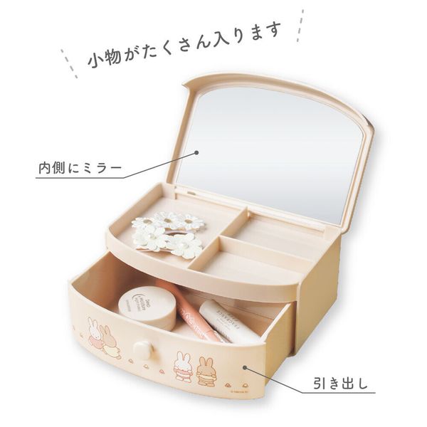 MIFFY 米菲 日版 塑膠 開合 首飾盒 飾物盒 抽屜盒 鏡櫃 化妝鏡 收納盒 置物盒 儲物盒 2022年款 米菲兔 (摩卡) 【平行進口】