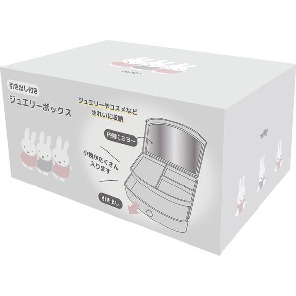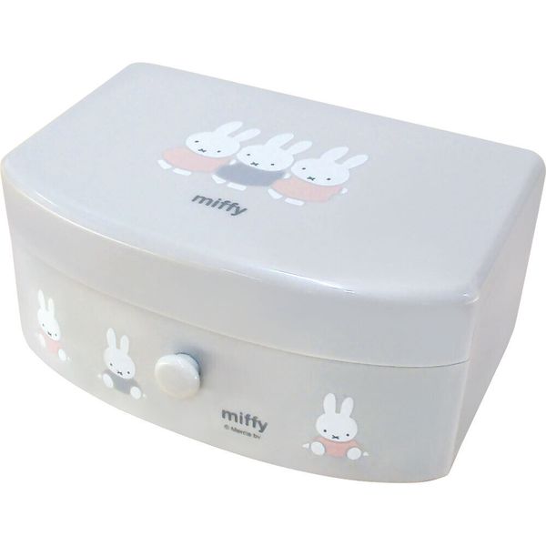 MIFFY 米菲 日版 塑膠 開合 首飾盒 飾物盒 抽屜盒 鏡櫃 化妝鏡 收納盒 置物盒 儲物盒 2022年款 米菲兔 (灰) 【平行進口】