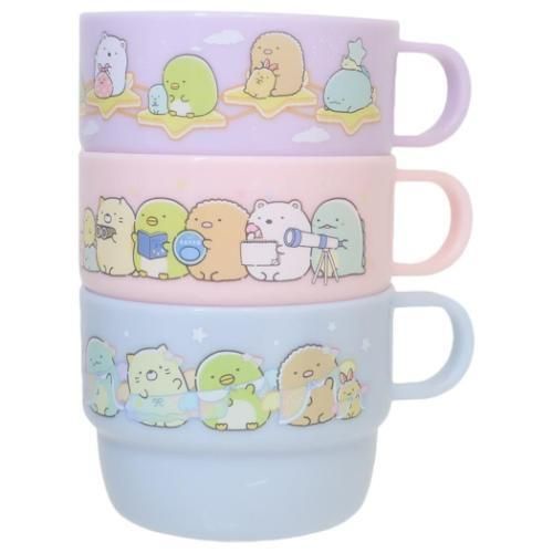 T'S FACTORY-SAN-X SUMIKKO GURASHI 角落生物 日版 餐具 家居 兒童 塑膠杯 有耳 水杯 3個裝 2024年款 角落小夥伴 (星空漫步) 【平行進口】