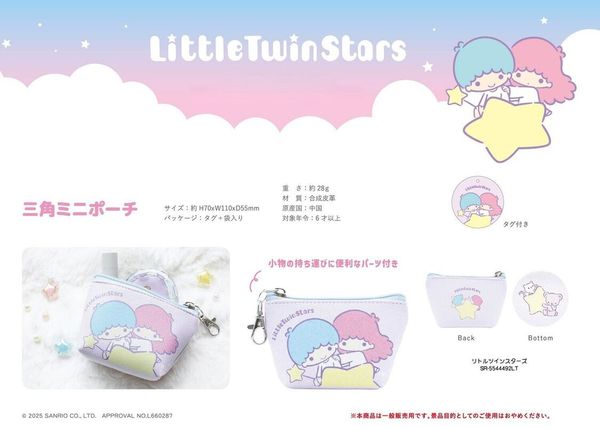 T'S FACTORY-SANRIO LITTLE TWIN STARS 日版 船形 三角 造型 零錢包 散紙包 小物收納袋 鎖匙扣 鑰匙扣 2025年款 雙子星 KIKI LALA【平行進口】
