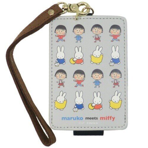 MIFFY X 櫻桃小丸子 日版 IC咭套 皮革 八達通 卡套 住戶證 咭套 便攜 掛繩 櫻桃子 米菲 NIJNTJE 米菲兔 (灰色) 【平行進口】