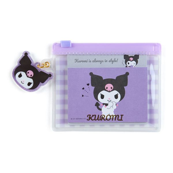 KUROMI 日版 文具 便簽 便條紙 連 收納袋 塑膠 密實袋 多功能 小物袋 卡片套 卡片包 酷洛米 庫洛米 可羅米 (2021年款) 【平行進口】