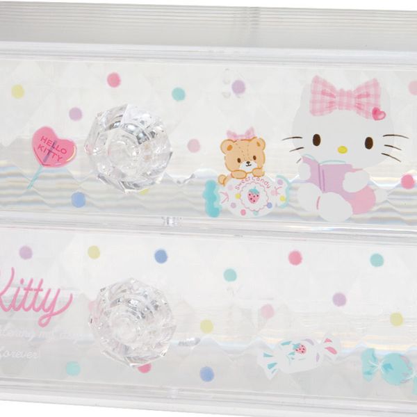 HELLO KITTY 日版 可組合式 透明 雙層 抽屜 收納盒 首飾 化妝品 護膚品 收納 KITTY 凱蒂貓 KT 吉蒂貓 2021 【平行進口】