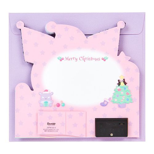 SANRIO-KUROMI 日版 毛絨 座檯 裝飾 音樂 聖誕卡 發光 閃燈 毛茸茸 聖誕咭 酷洛米 庫洛米 可羅米 2024年款 【平行進口】