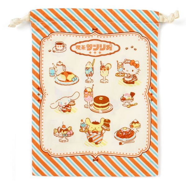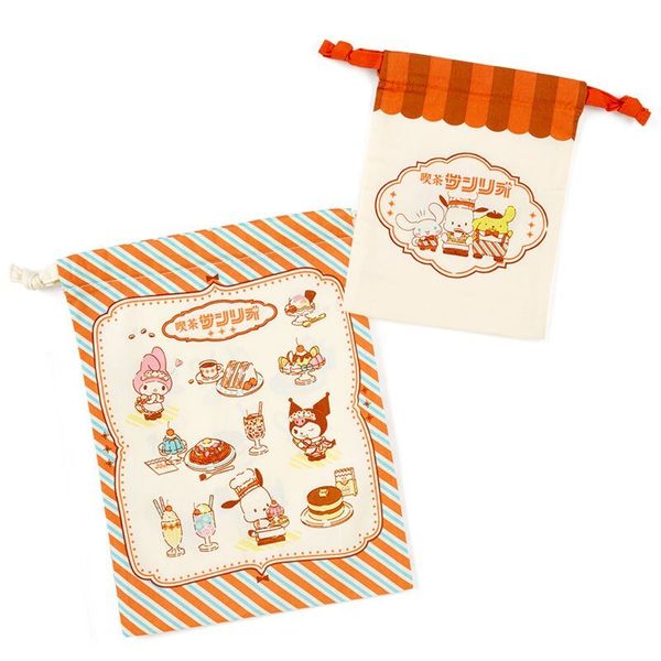 SANRIO CHARACTERS 日版 棉質 索袋 索繩袋 抽繩袋 小物袋 收納袋 套裝 一套兩個 2022年 (SANRIO 喫茶2號店系列) 【平行進口】