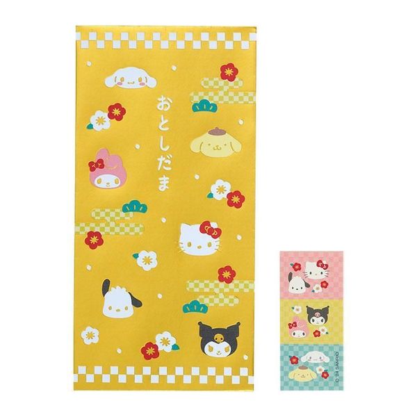 SNRIO-MIX CHARACTERS 日版 2025 賀年 新年 長方形 燙金 利是封 3個裝 紅包 壓歲錢 蛇年 凱蒂貓 吉蒂貓 【平行進口】