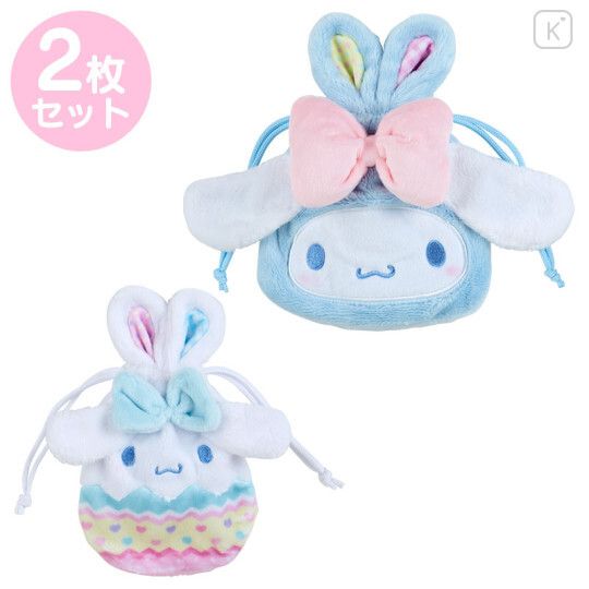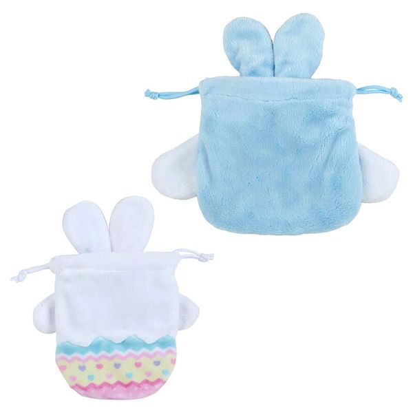 CINNAMOROLL 玉桂狗 日版 短耳兔造型 大頭 毛絨 毛草茸 索袋 索繩袋 收納袋 小物袋 索繩包 2個 套裝 大耳狗 2024 (復活節系列) 【平行進口】