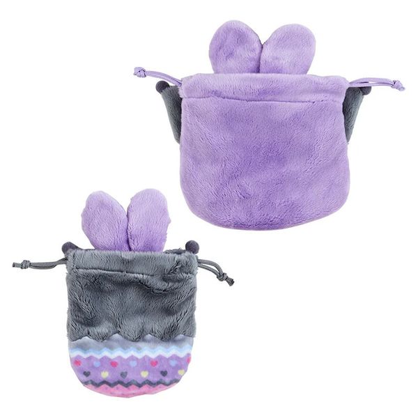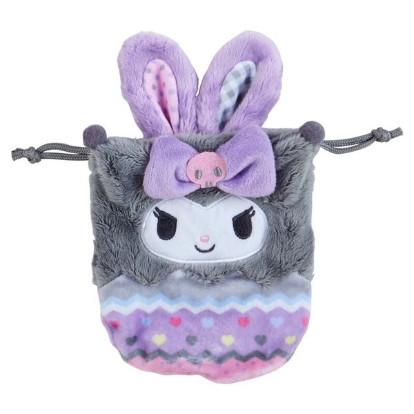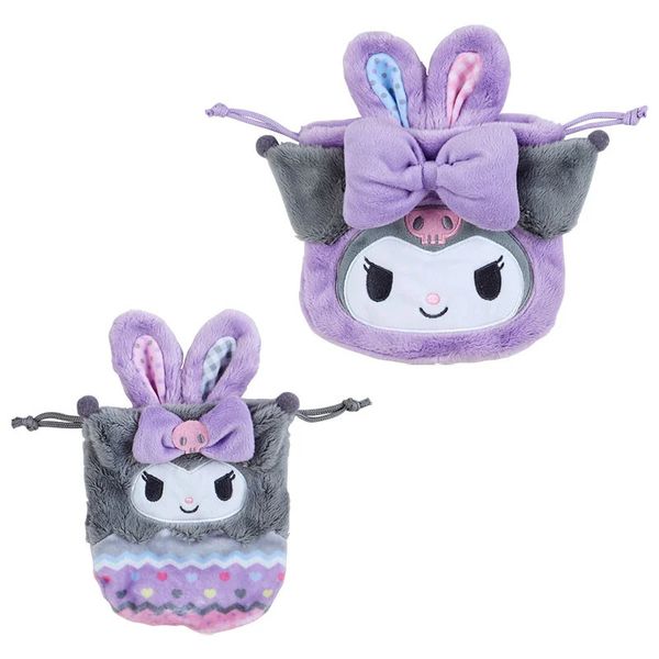 KUROMI 日版 短耳兔造型 大頭 毛絨 毛草茸 索袋 索繩袋 收納袋 小物袋 索繩包 2個 套裝 酷洛米 庫洛米 可羅米 2024 (復活節系列) 【平行進口】