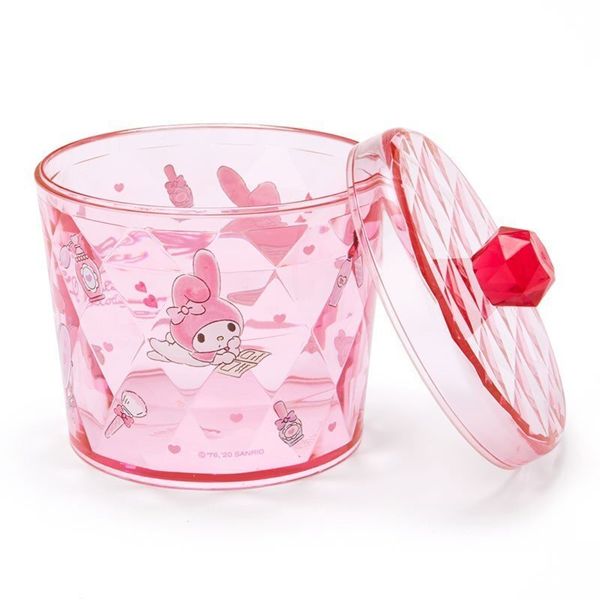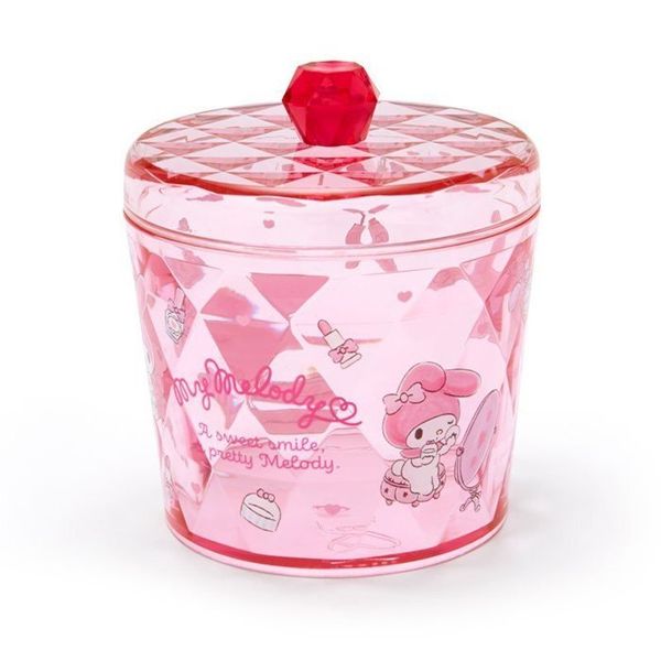 MY MELODY 日版 桌上 鑽石感 圓形 揭蓋 收納盒 儲物盒 飾物盒 小物盒 棉花棒 收納罐 美樂蒂 【平行進口】