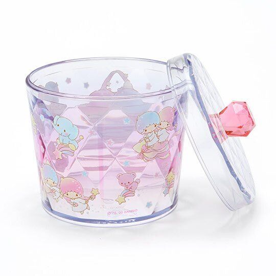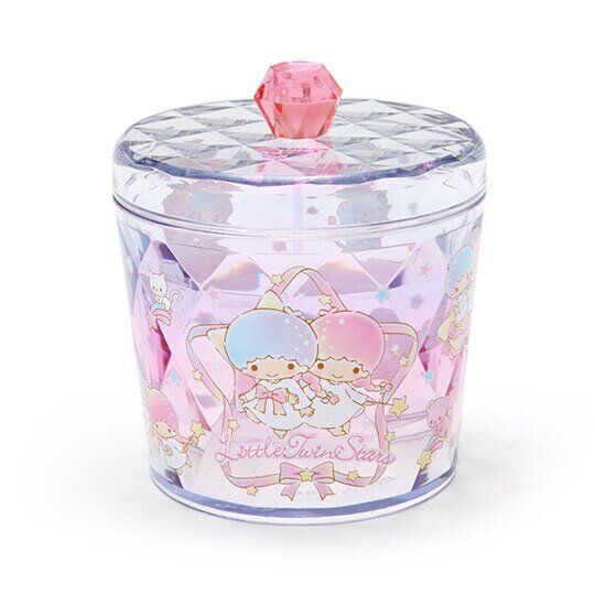 LITTLE TWIN STARS 日版 桌上 鑽石感 圓形 揭蓋 收納盒 儲物盒 飾物盒 小物盒 棉花棒 收納罐 雙子星 KIKI LALA 雙星仙子 【平行進口】