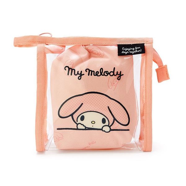 MY MELODY 日版 多功能 透明 化裝袋 收納袋 連 索袋 索繩袋 小物袋 索繩包 抽繩袋 美樂蒂 2022年 (簡約系列) 【平行進口】